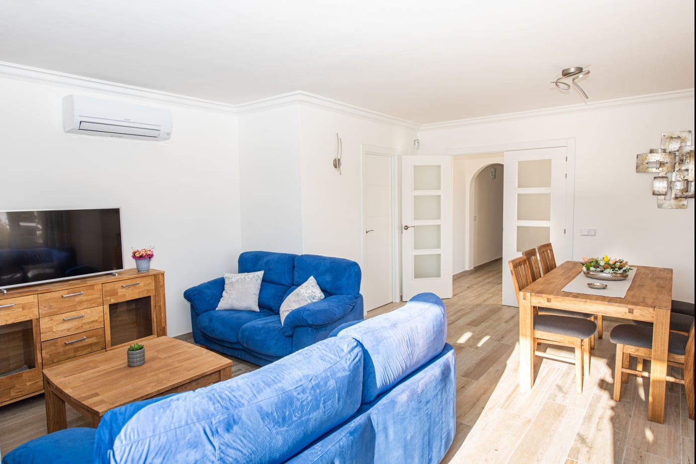 Una villa muy soleada y especialmente preparada para disfrutarla, su buena localización cerca de la playa y del centro del pueblo y todos los servicios la convierte en una casa perfecta para poder viajar sin necesidad de coche.