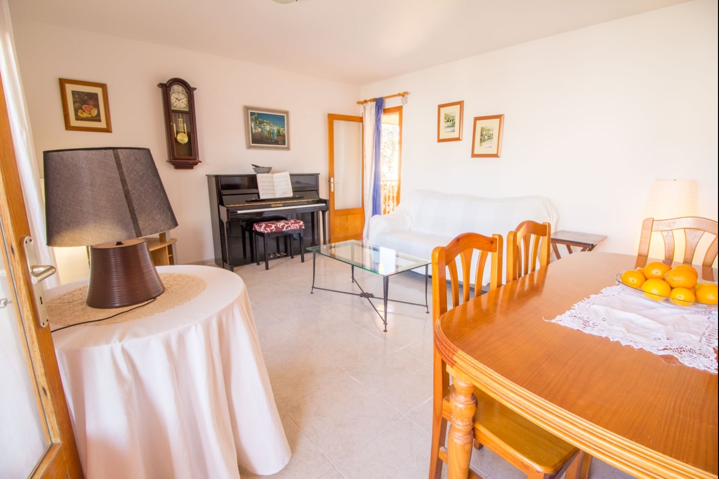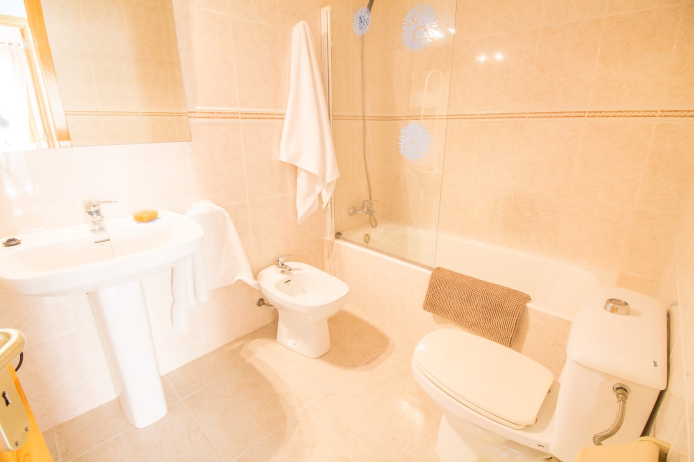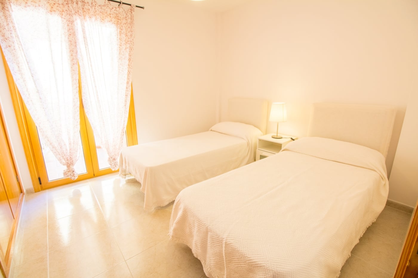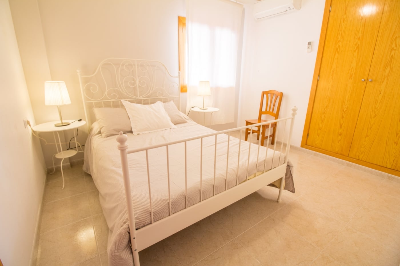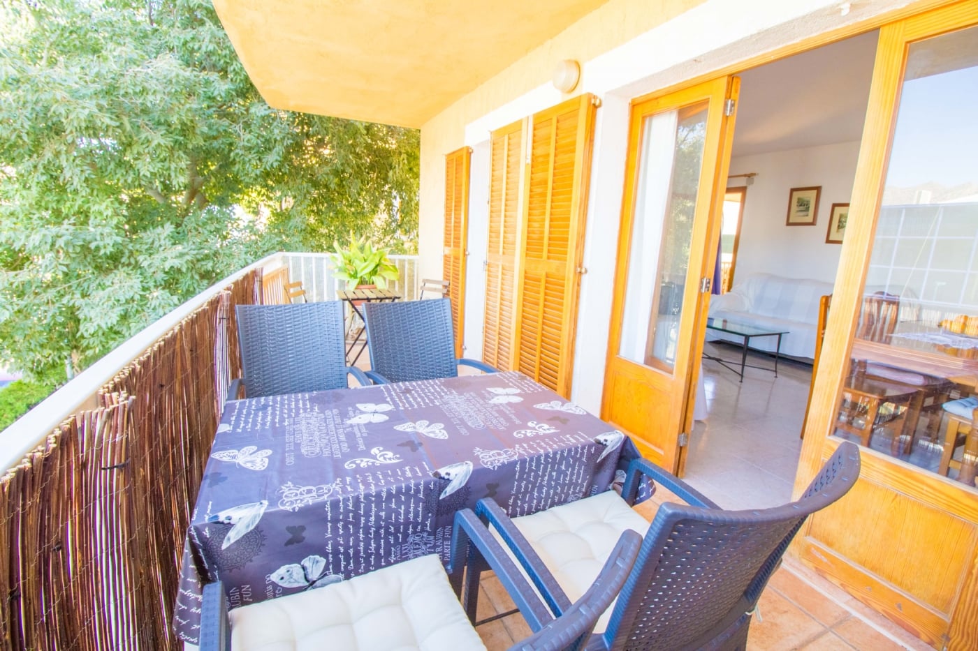 Bonito apartamento en zona muy tranquila a 100 metros de la playa tiene 3 dormitorios dobles con aire acondicionado y dos baños, uno con bañera y otro con ducha, salon comedor con mesa para 6 comensales, 2 terrazas exteriores con espacio para una mesa para comer, cocina totalmente equipada, el apartamento está totalmente equipado con sabanas, toallas y trapos de cocina, Wifi y televisión.