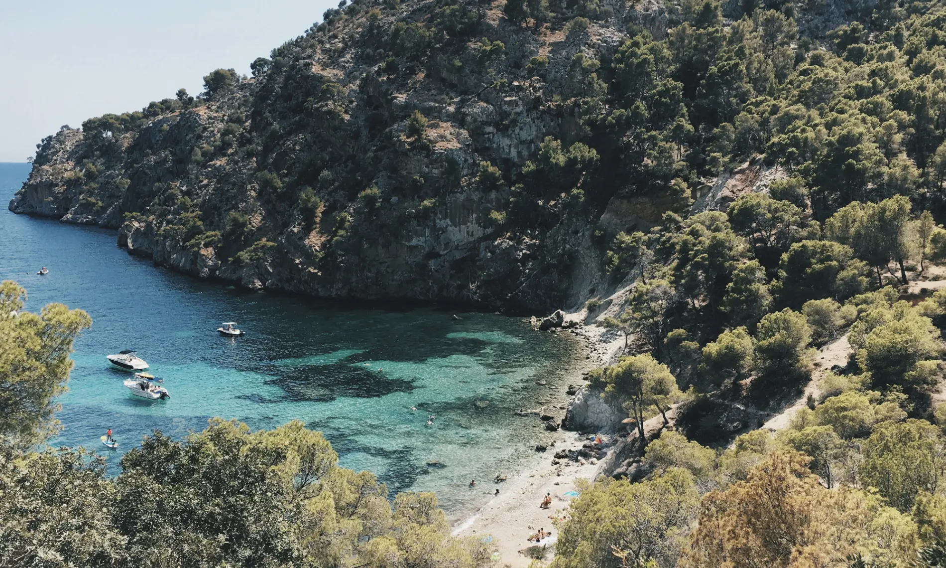 La presencia de la Serra de Tramuntana crea un paisaje único, donde la montaña desciende hasta el mar formando calas de aguas limpias y un entorno perfecto para desconectar.
