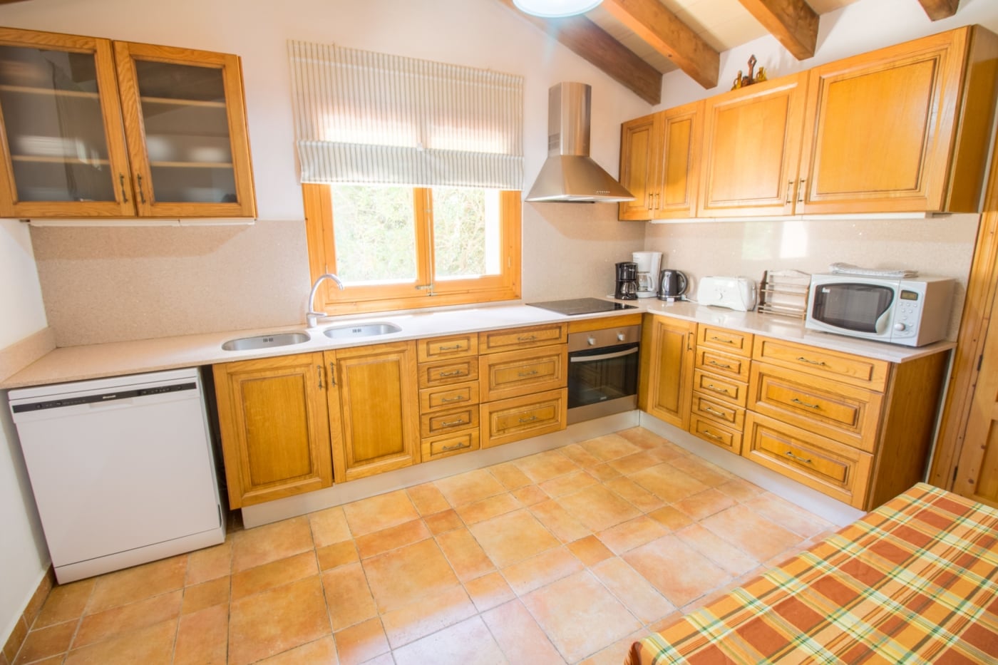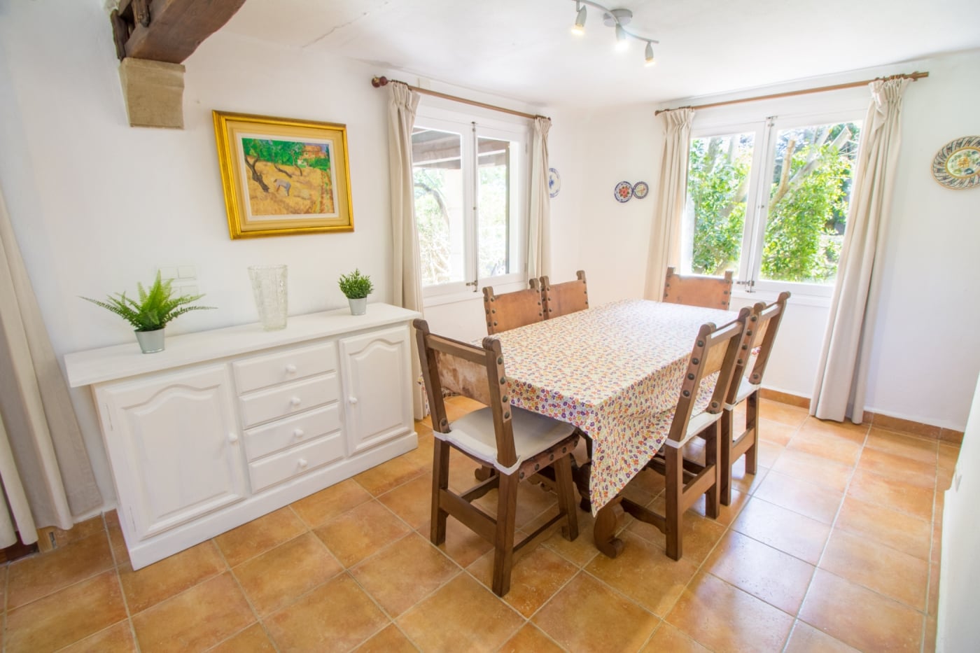 Chalet con tre camere da letto, una delle quali collegata ad un bungalow con bagno privato completo. Piscina con ampio giardino, molto soleggiato tutto il giorno con un fantastico tramonto dietro le montagne, portico antistante con forno a legna e barbecue a legna coperto. Piccolo bosco all'interno della proprietà, zona molto tranquilla. A pochi km dal mare e da Puerto de Pollensa. Esecuzione di una profonda fumigazione per le formiche ogni anno e ristrutturazione della proprietà.